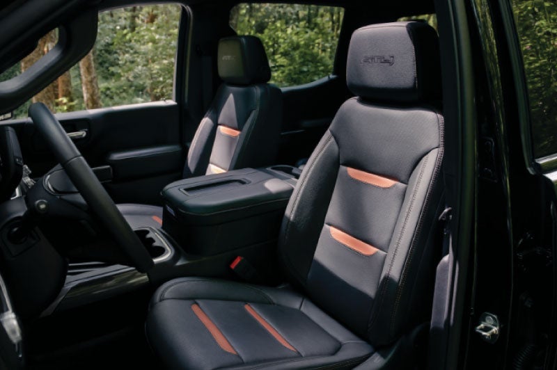 AT4 and Denali’s independent front suspensions provide excellent wheel alignment, ride comfort and turnability with reduced weight. Live-axle suspension includes two-stage, semi-elliptic multileaf rear springs to balance payload management and ride quality.