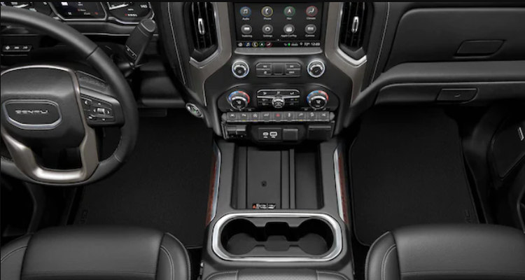 When on the road in the Sierra Heavy Duty, it’s OK to leave the cords at home. The wireless charging pad,† located within easy reach near the cup holders, has excellent charging abilities. Wireless phone projection via Apple CarPlay and Android Auto.